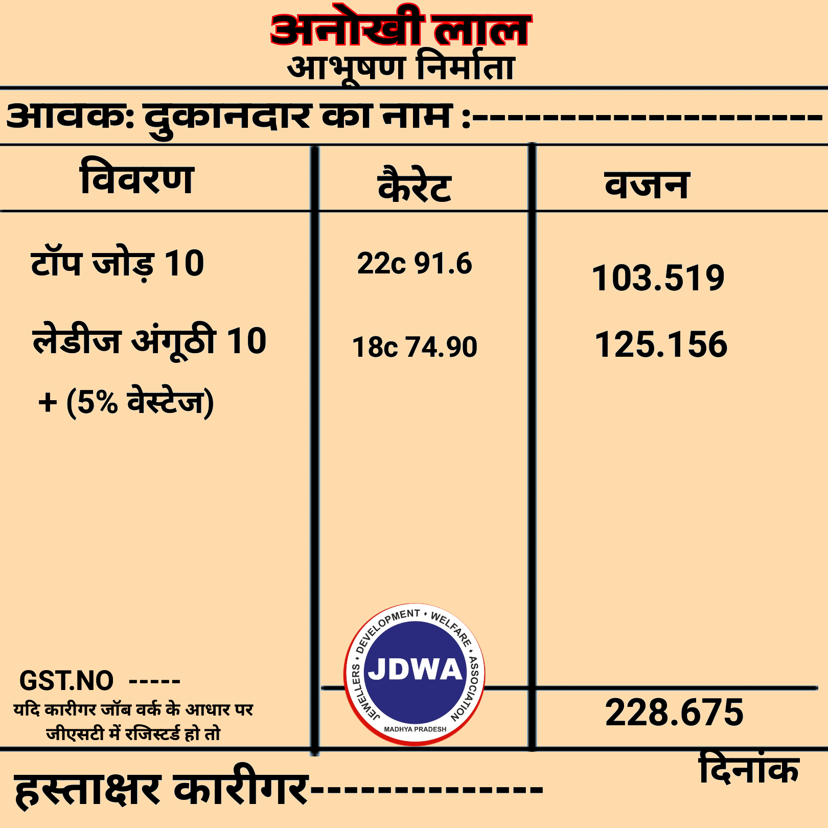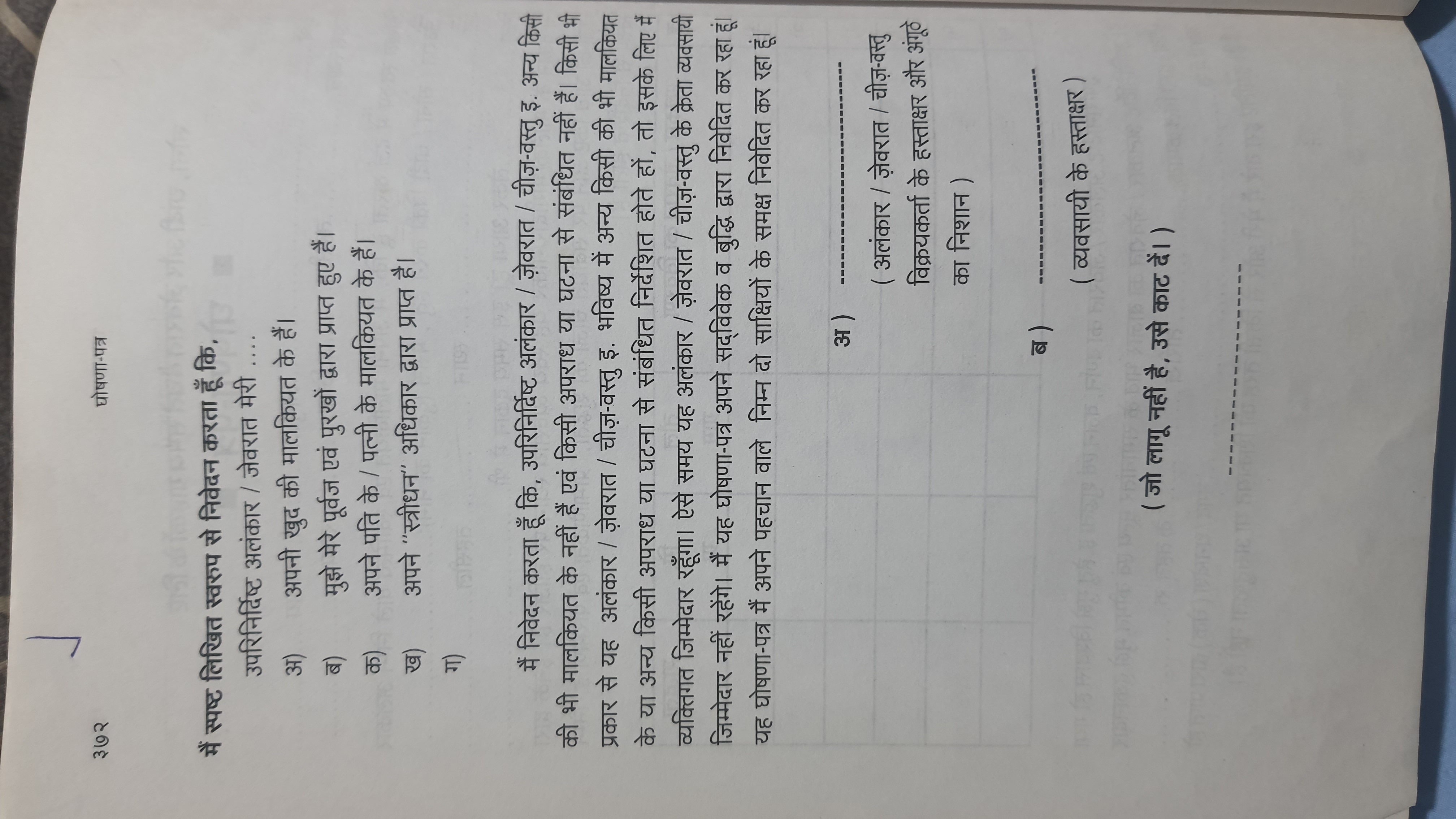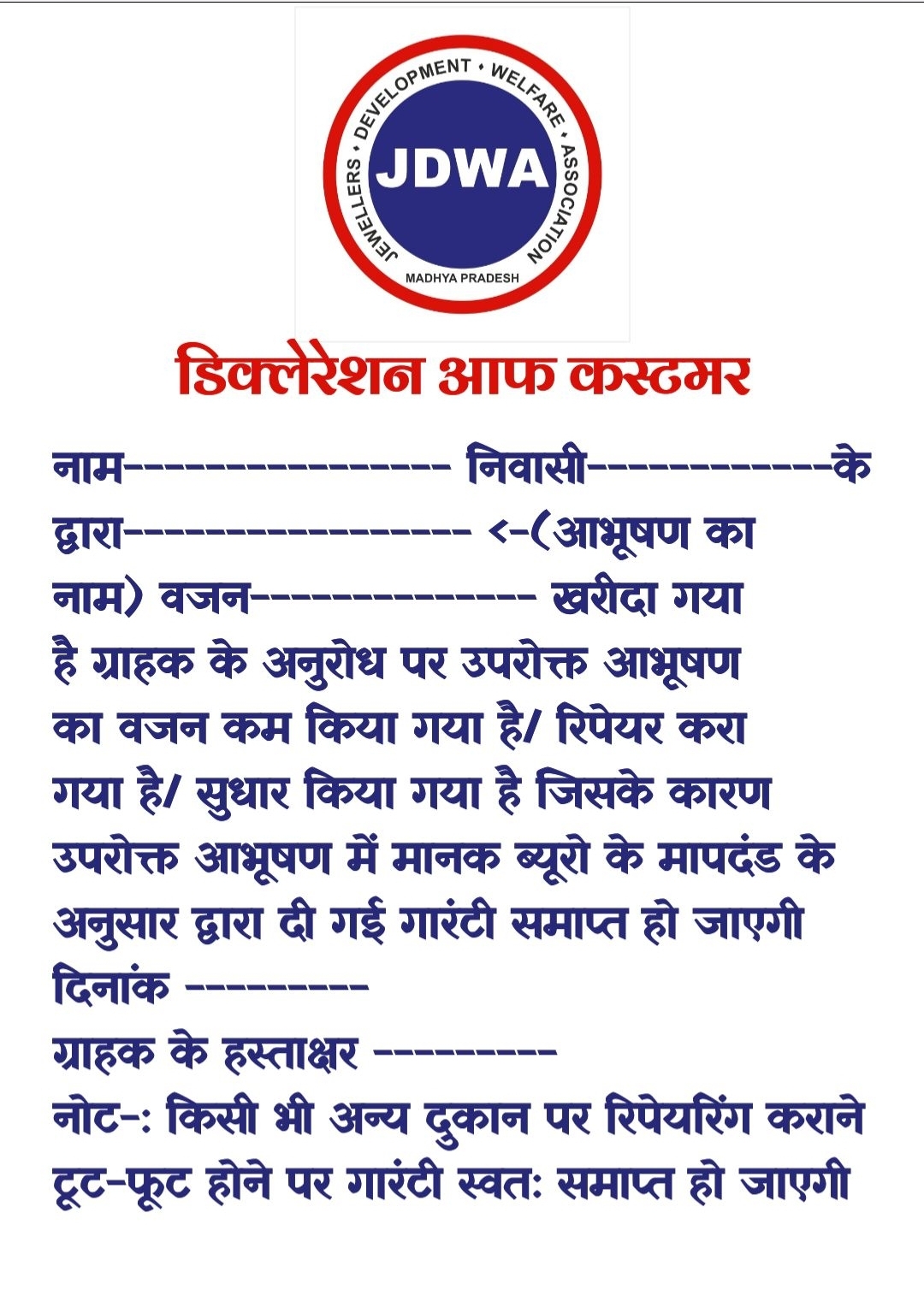 सोना चांदी बेचते समय ग्राहक से लिया जाने वाला शपथ पत्र