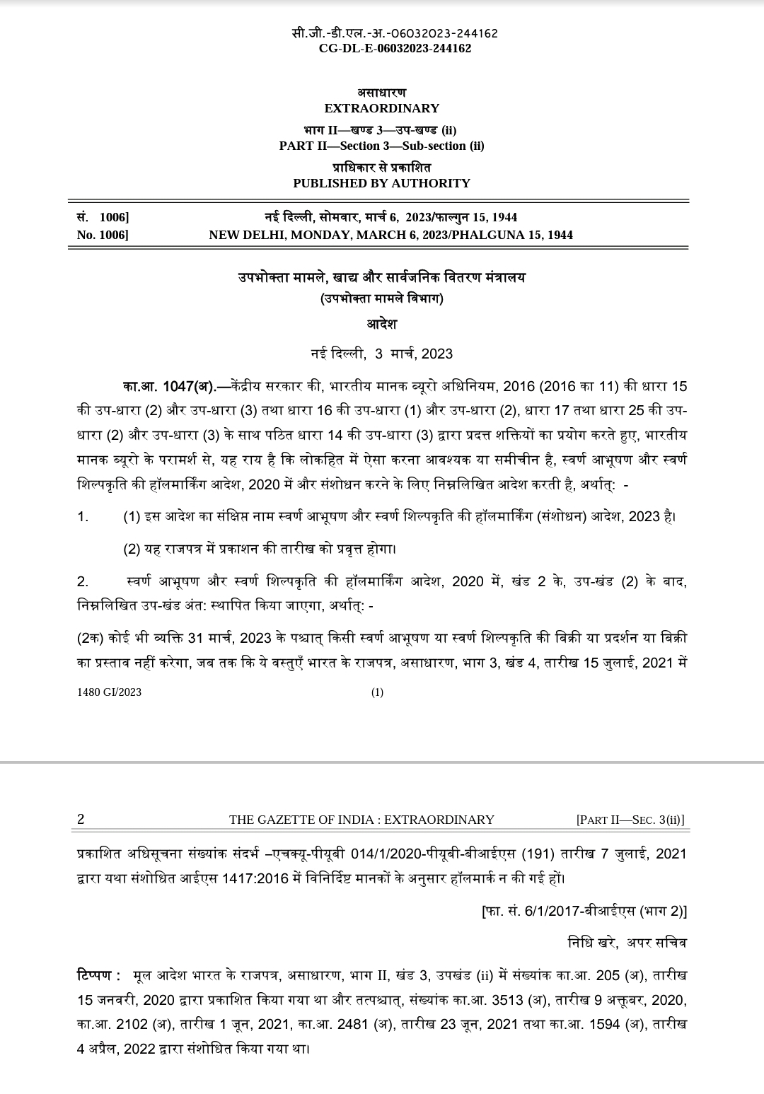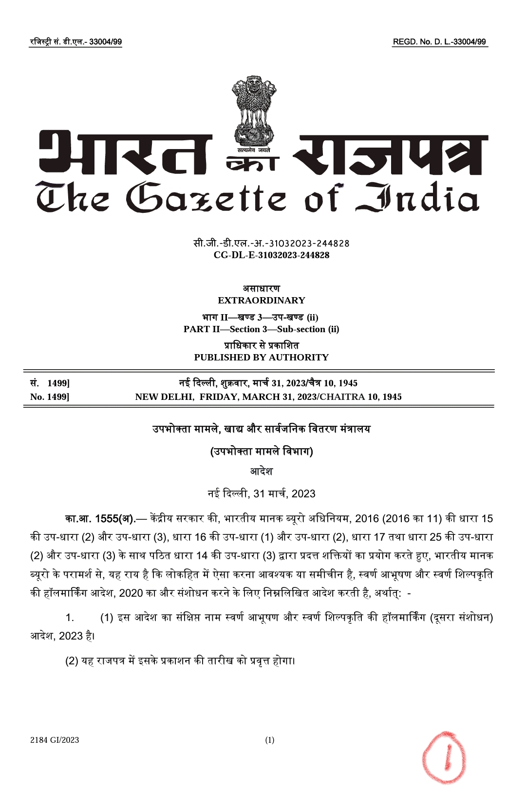 JDWA.M.P 1 अप्रैल राजपत्र
