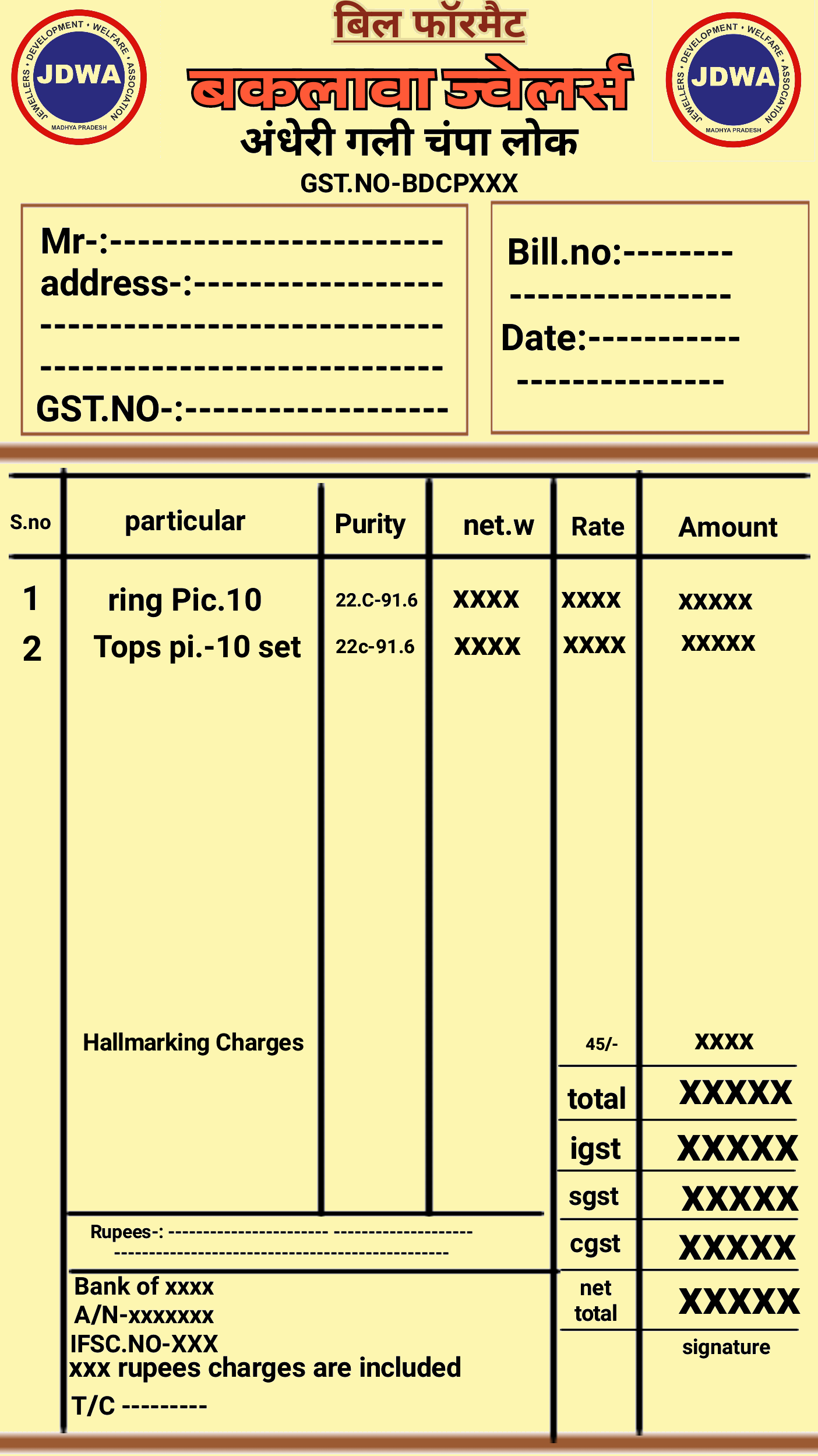 आभूषण खरीदी का फॉर्मेट
